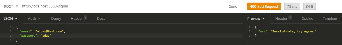 POST /signin| Body | Type | Description |
