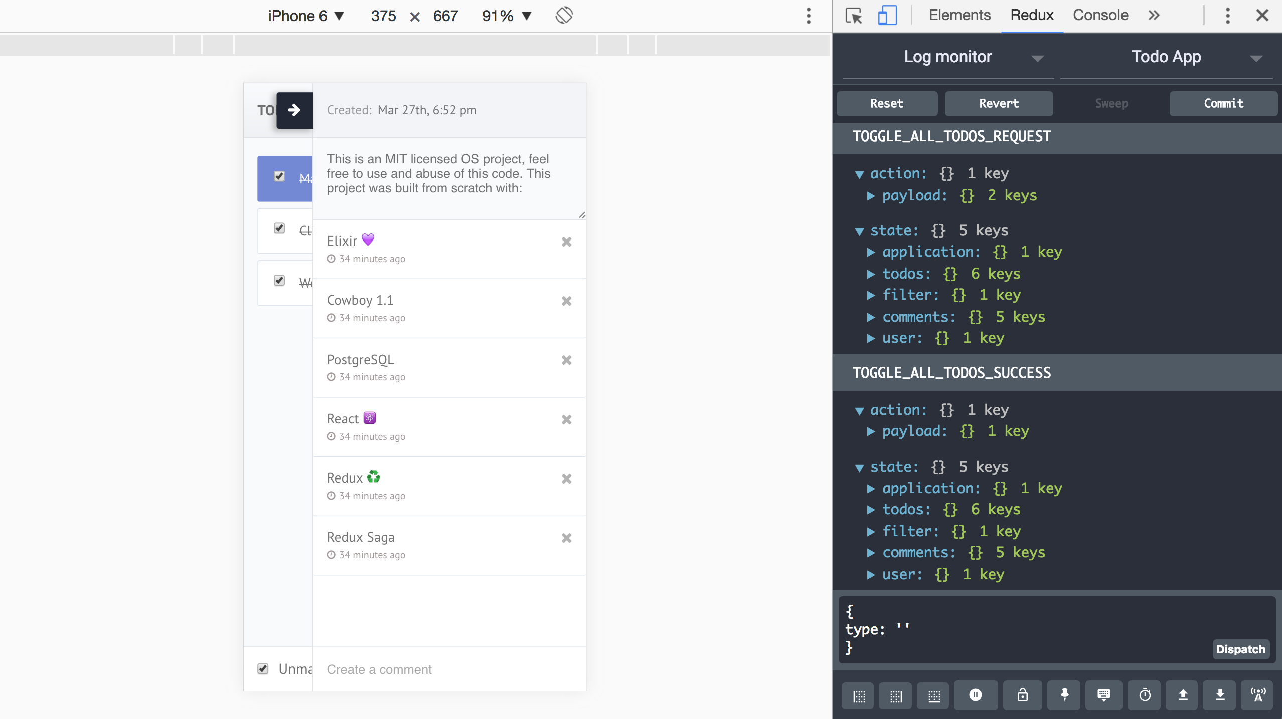 This repository contains the source code of a Todo list web application that pretends to serve as a mid size example to learn how to build modern SPAs with Elixir (not Phoenix) and React. In this project you will find how to implement important features and services such as: