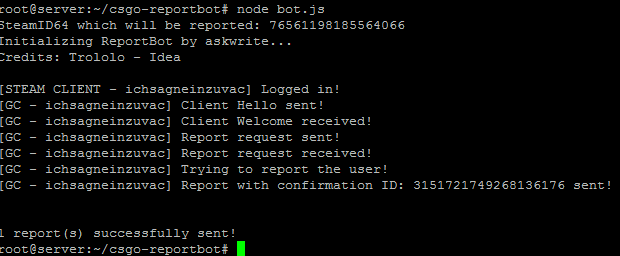 A node-steam plugin for reporting players in Counter-Strike: Global Offensive.