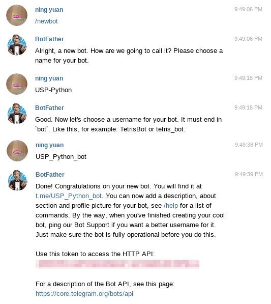 - First, we need to have a telegram account (bot) to access. Talk to @Botfather, a telegram bot by telegram to create telegram bots, to create a bot. Copy and paste the HTTP API somewhere