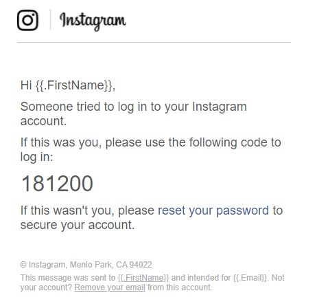 A very basic Instagram mail which attempts to have people click on a link to secure their account.