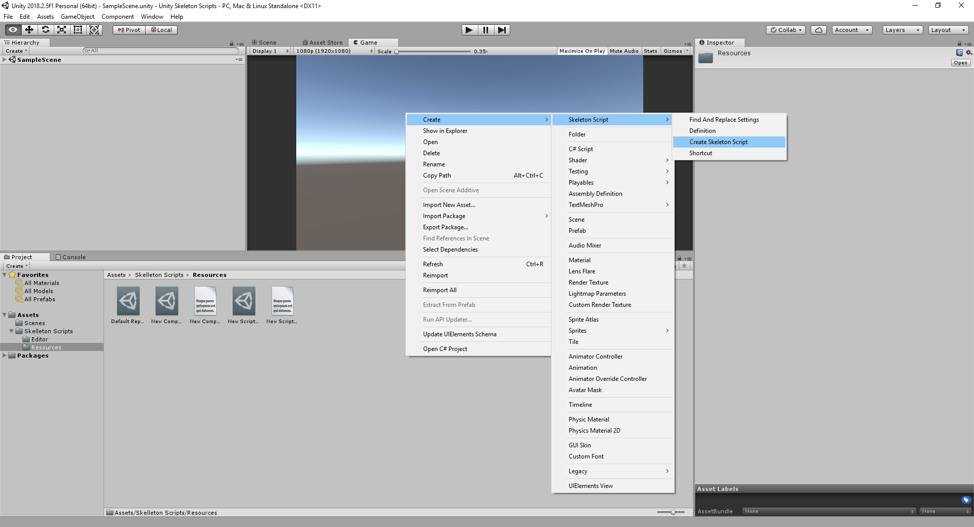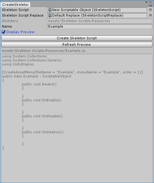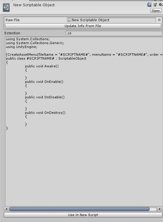 Default create scriptable object skeleton