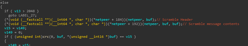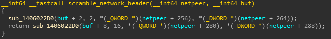 and you guessed it! Those members that it passes into these functions are the keytables (and size of the keytables) for the header! Similarly the function that scrambles the message contents also reads from the netpeer object to get the keytable used for it.