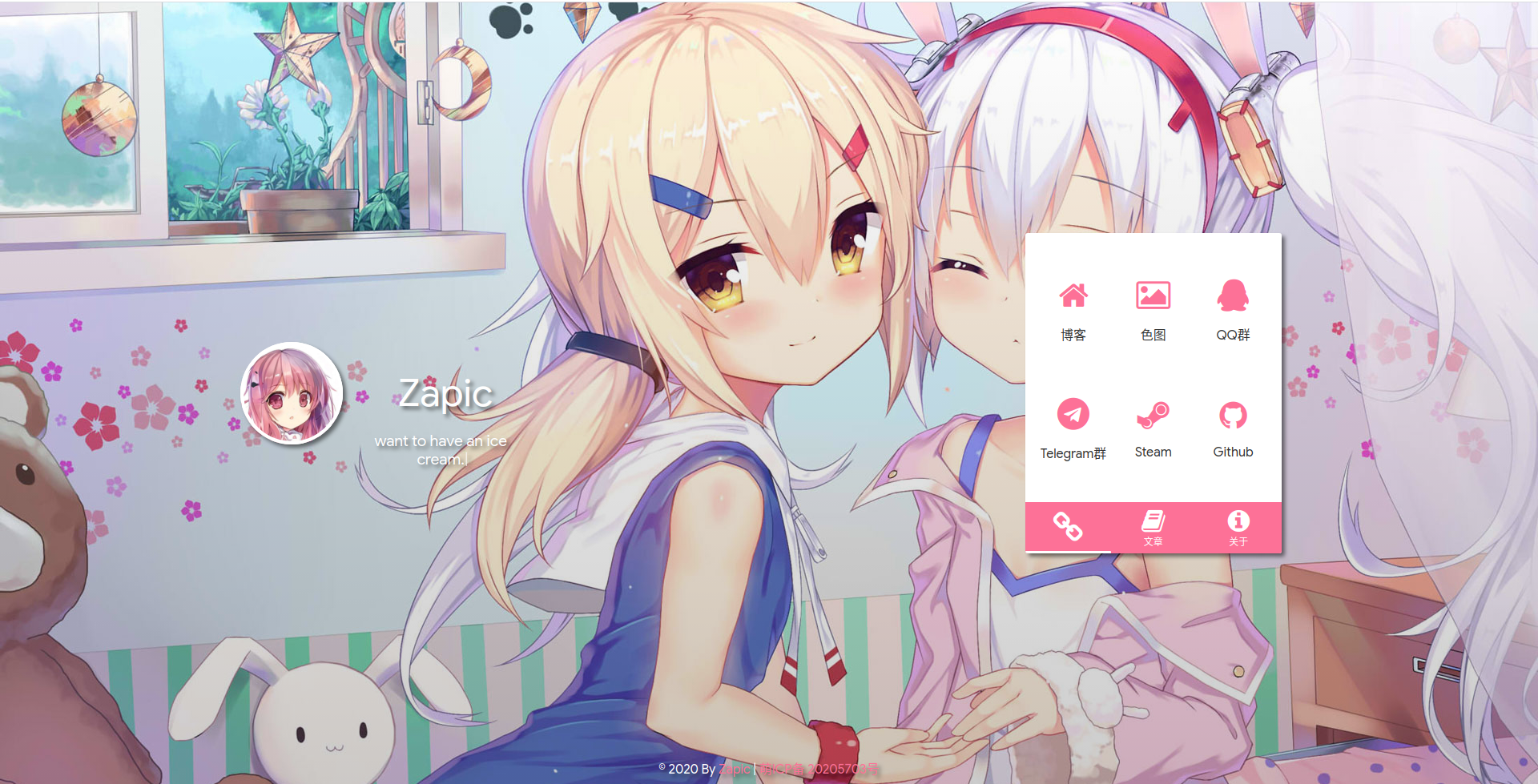 一个简洁的个人主页,支持显示博客文章/随机背景图片/随机语句.
