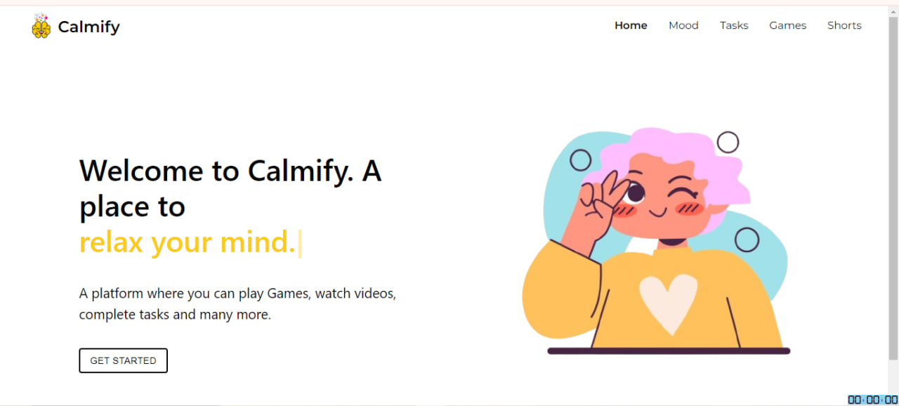 Calmify is a mental health app designed to help users relax and improve their mental well-being through interactive games, short tasks, and soothing videos. The website is developed using React and aims to provide a positive and engaging experience for users.