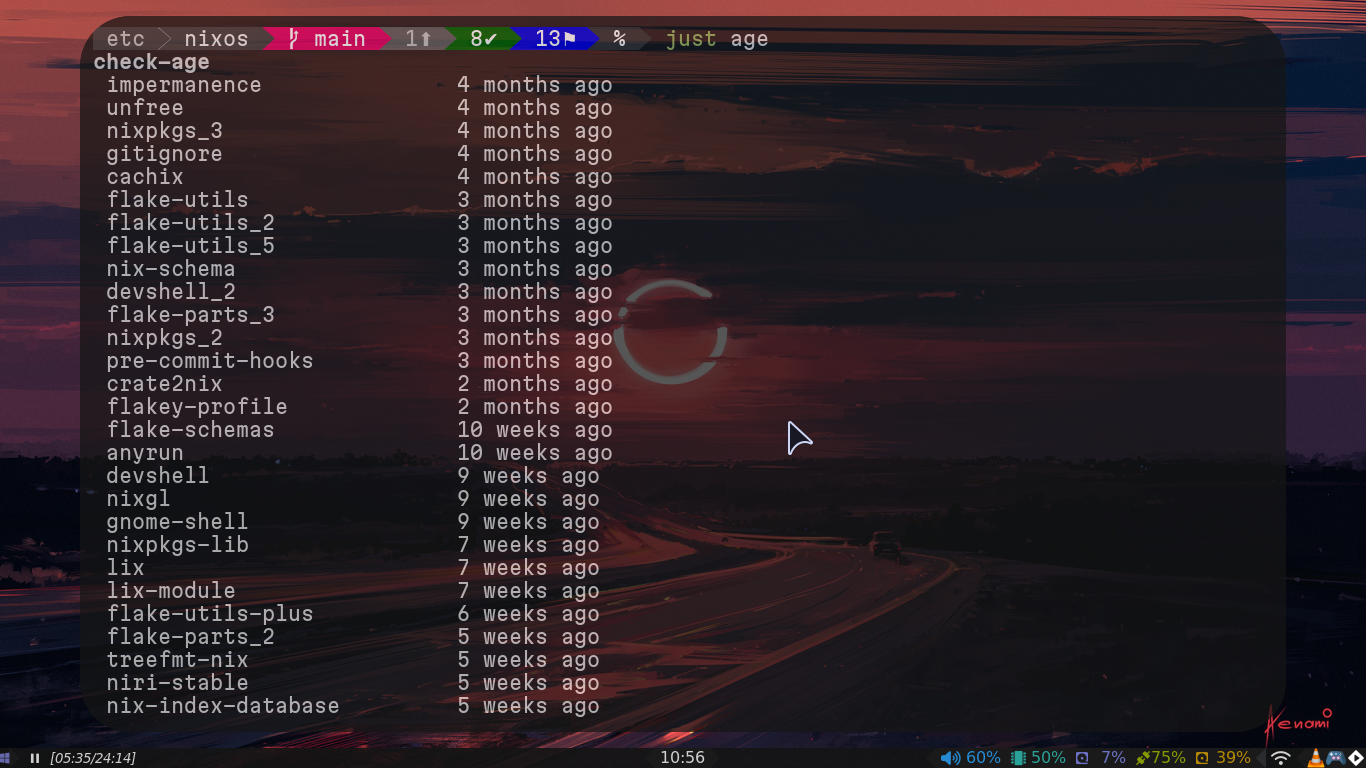 $ nix --experimental-features "nix-command flakes" run nixpkgs#just -- switch$ just -l