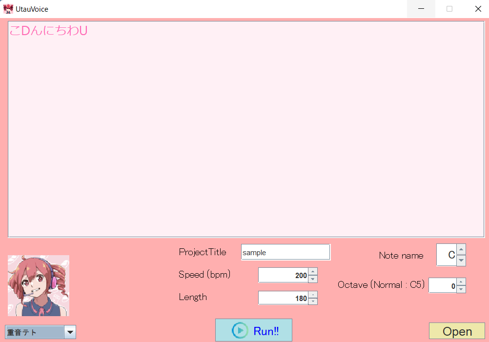 UtauVoice.javaをコンパイルしてUTAU_VOICEのウィンドウを表示する。