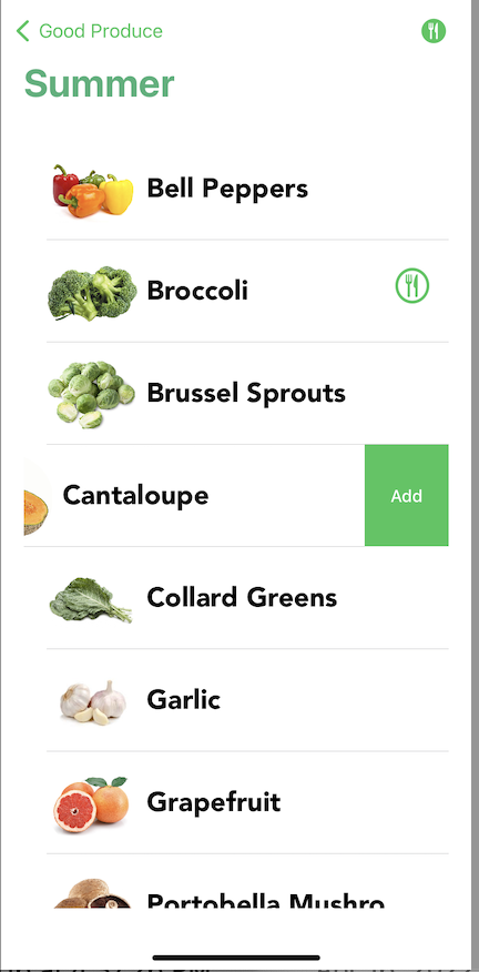 Initially, there were several additional features for each produce, the rating and status (which was to be whether it needed to be eaten / had been eaten).