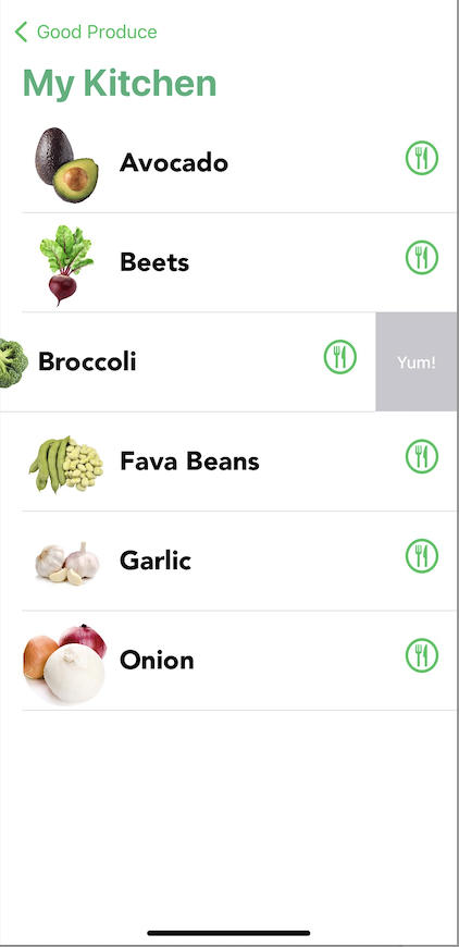 Trailing Swipe to remove item from My Kitchen: Yum!