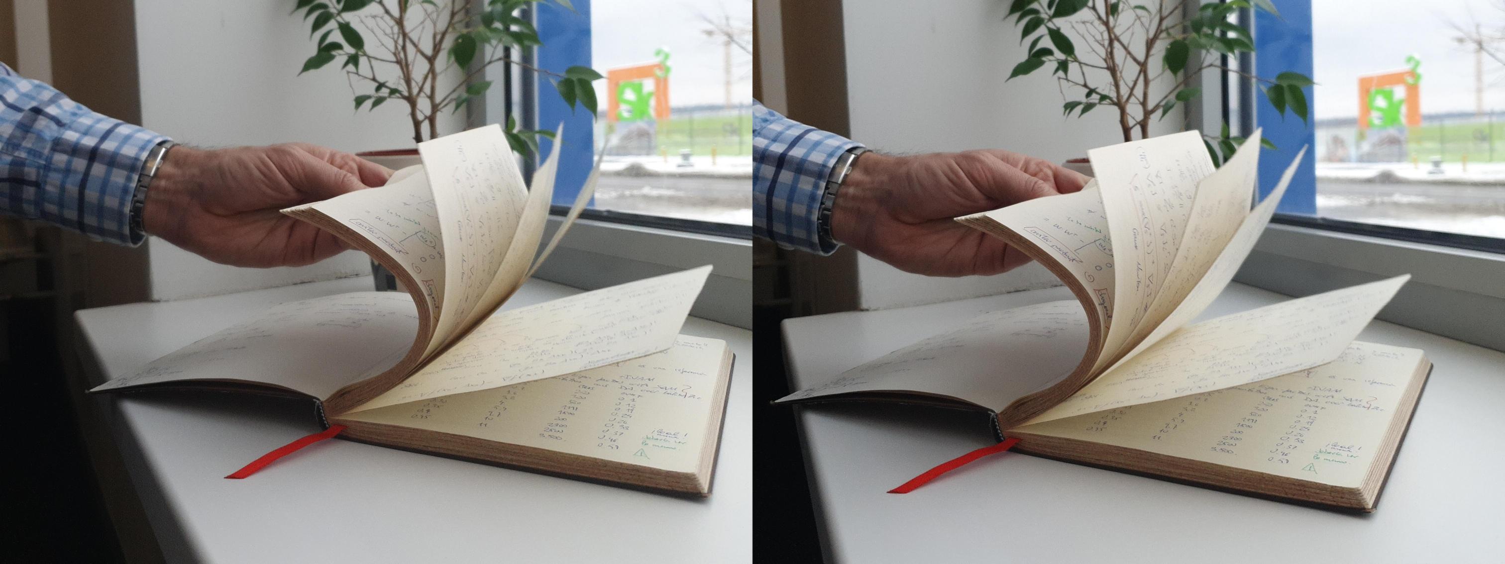 Demonstration of gyroscope-based sync accuracy on notebook flipping, shot by two Galaxy S10e smartphones