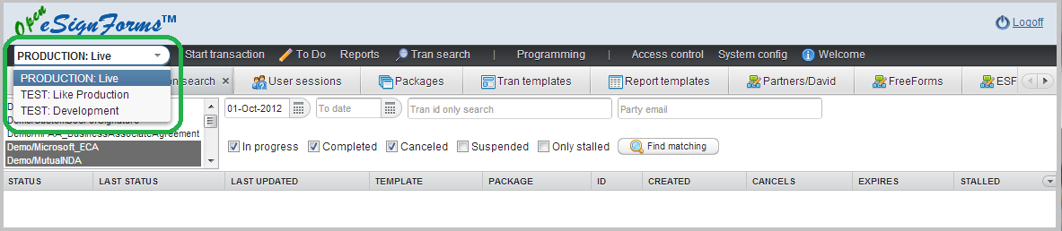In Test Like Production mode, you will see a new orange border that will help you understand that you are actually in test mode, albeit for production-level components (package, document, image, drop down, etc. all will use production versions). To Do, reports and transaction search will show only test transactions. When you run To Do or reports you will see a similarly colored orange dotted line appear under the search area to make it clear that the output you see in is for test transactions. This is because if you switch modes and you run reports or the like in different tabs, you will be able to tell easily if you were looking at test/production transactions in those reports.