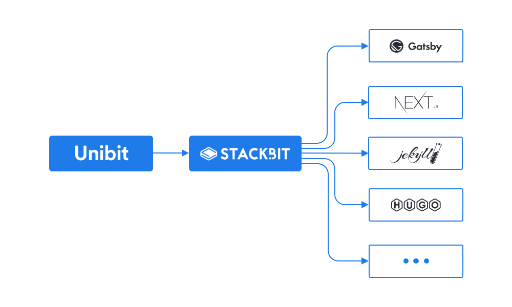 This theme is written in Unibit. Themes written in Unibit can be converted to other static sites generators (SSG) such as Gatsby, Hugo, Jekyll and Next.js using Stackbit Site Builder. The site builder will generate the SSG-specific version of this theme and push it to your own GitHub repository. You are free to use and modify the generated source however you wish.