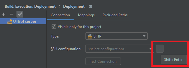 choose the name of your SFTP configuration (e.g., UTBot server).