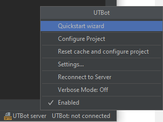 You can also find the wizard in the Status Bar (lower right): select the UTBot widget and choose Quickstart wizard.