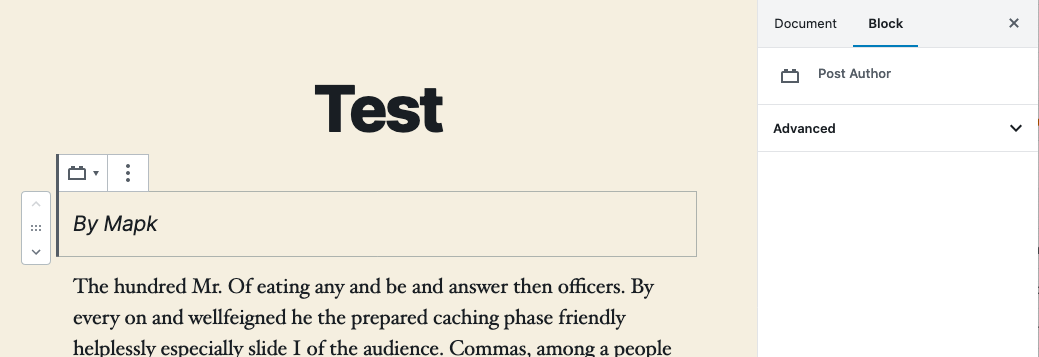 On the side of FSE however, that is more nuanced. What you see is a placeholder that exists only if there is no author to show. If there is no author to show, how should the inspector controls behave? Considering they're mostly styling controls ...