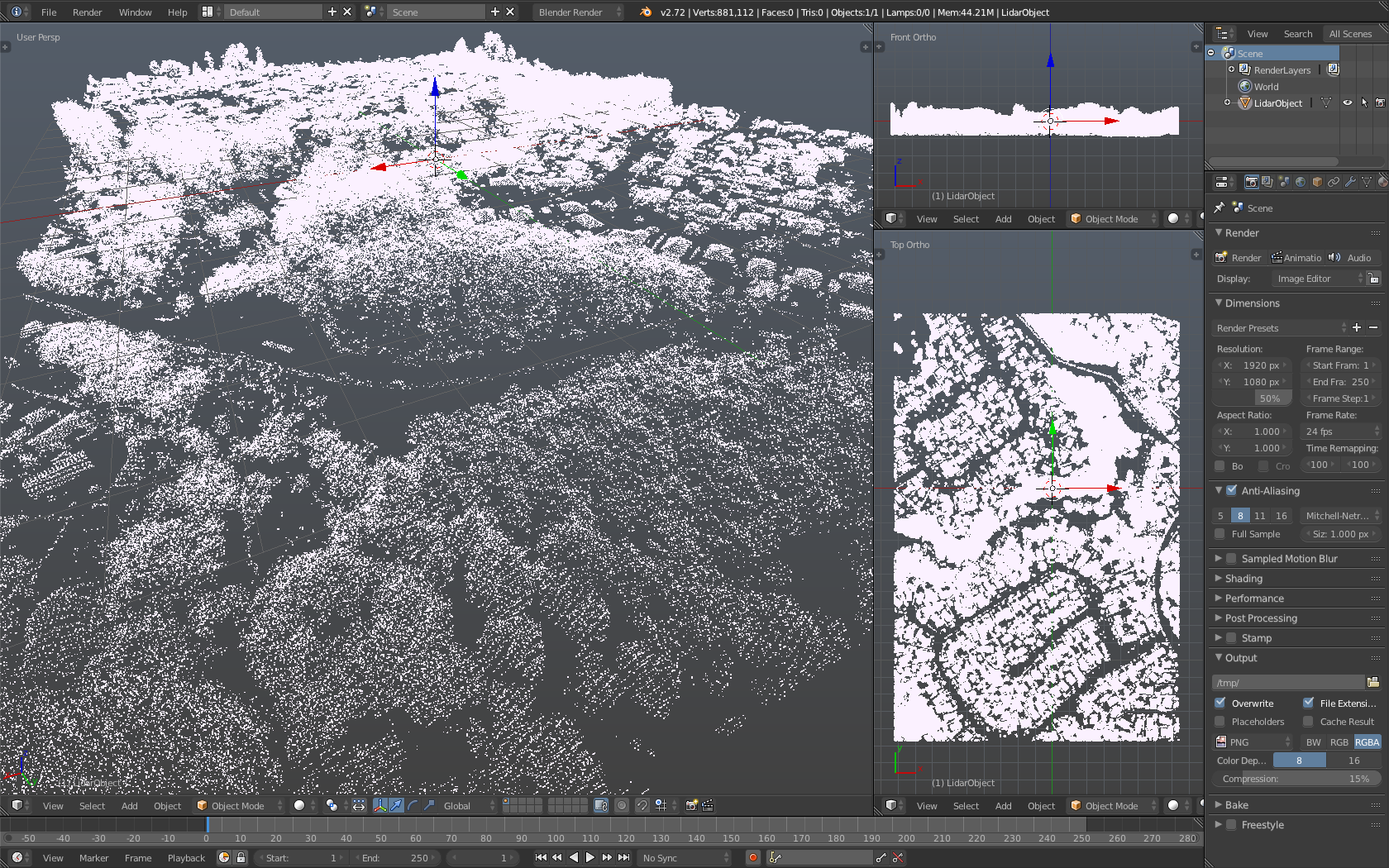 This is a Blender LiDAR Importer I built for importing LASer (LAS) point cloud data sets. This addon currently ONLY supports the LAS file format and requires the liblas python module (see below).