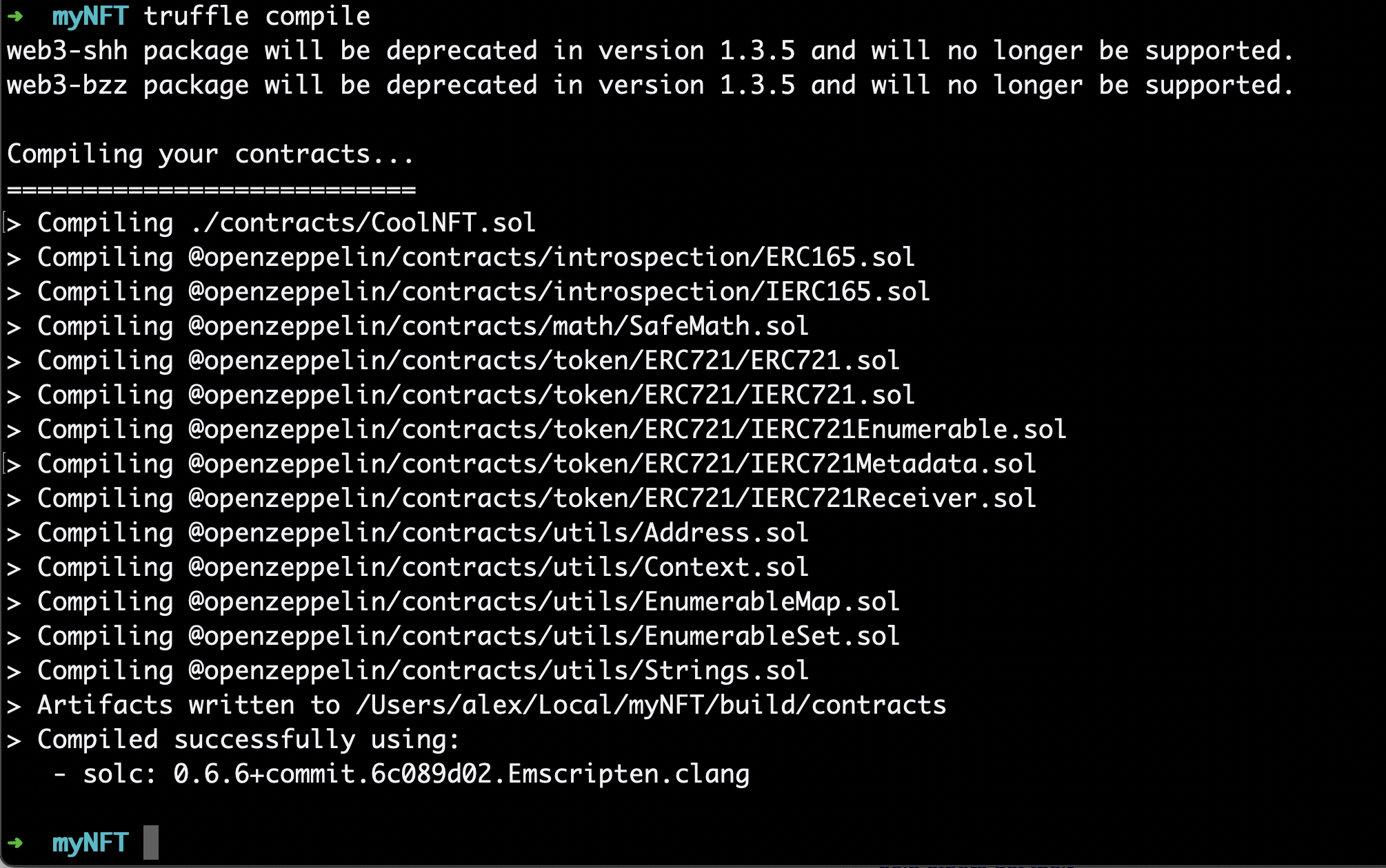 Now that we’ve compiled the NFT smart contract, the last step is to deploy it. Run the following to deploy to the Alfajores testnet: