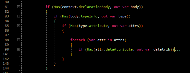 }Calling code is now neater: if (Has(context.declarationBody, out var body))
