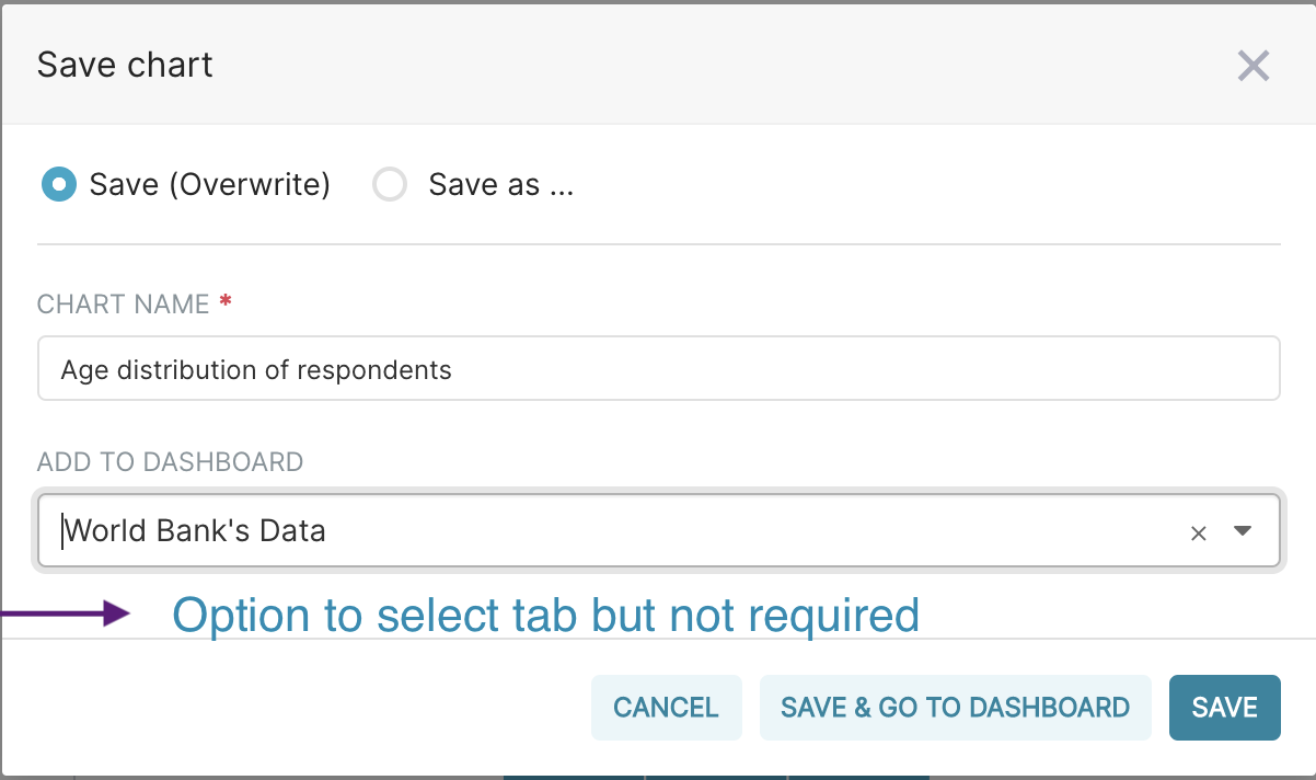 "It would be great if I can choose which tab to add a chart to dashboard to rather than dropped in the first page."