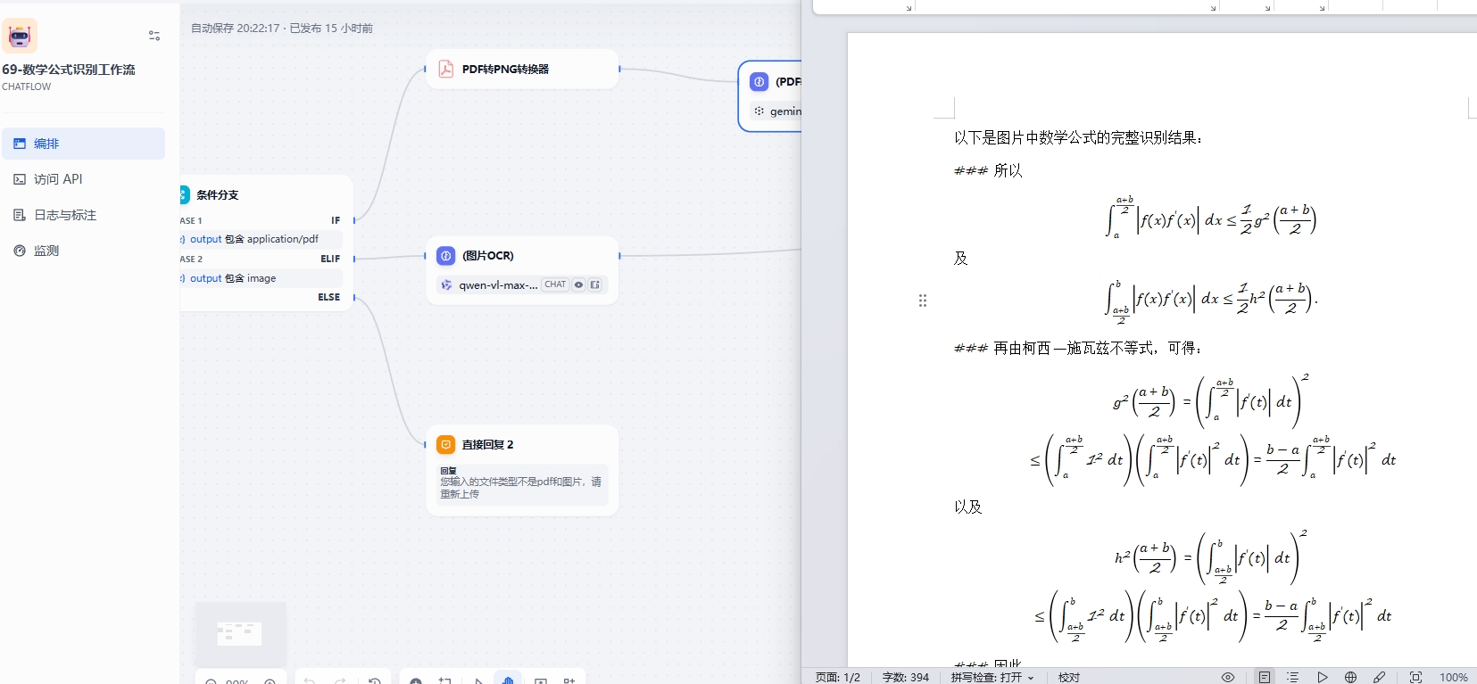 模板转换、条件分支、pdf转png转换器(第三方工具)、基于多模态llm大语言模型、变量聚合器、基于文本大语言模型 | 2025年6月2日 | wwwzhouhui | 1.4.0 |