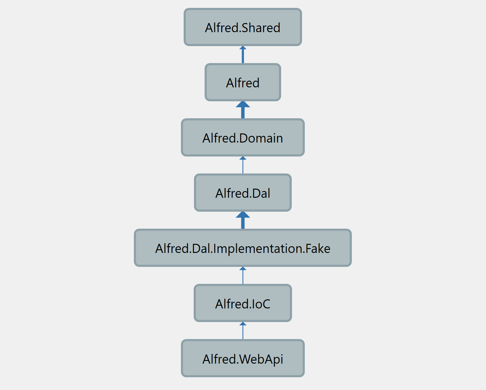 - Alfred.IoC: IoC configuration has its own project for the sake of clarity and Dll referencing optimization