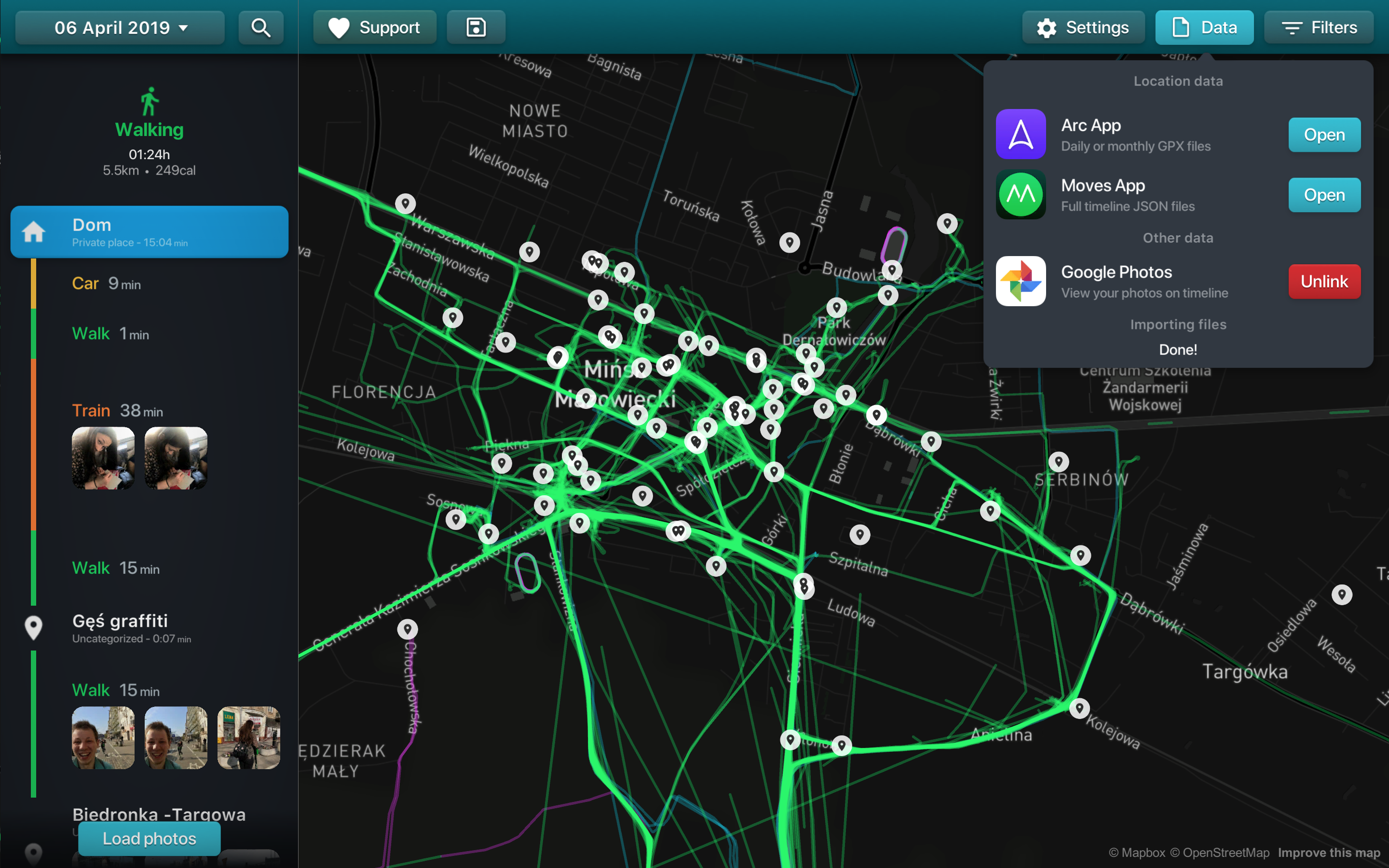 Check your Moves app & Arc app history on Map!