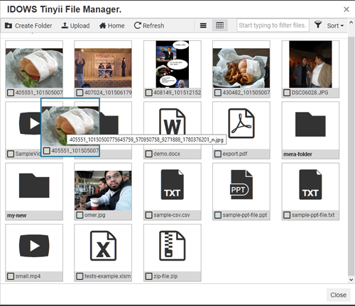 if all above is done correctly then browse the page where you have configured any of the above Text Editors, once the editor loads you can see the IDOWS Tinyii Filemanager button in the toolbar and you are all done.