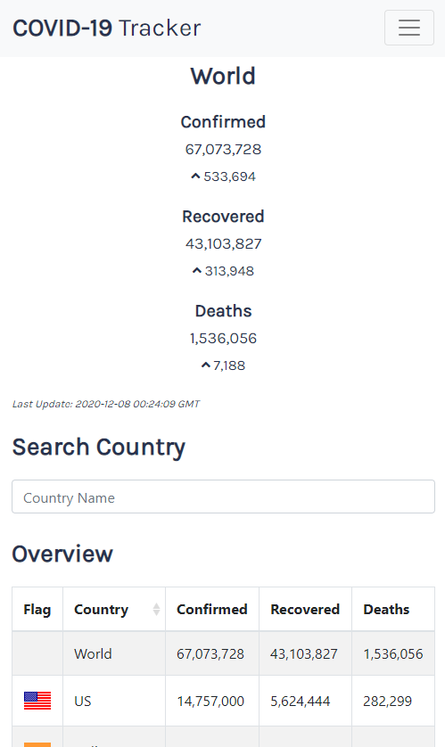 Web app with autmatic daily updates about COVID-19 for more than 150 countries.