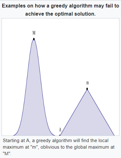 上圖是二維平面,看不太出『貪婪算法』與爬山演算法的差別,假如是『三維圖形』時,那麼『貪婪算法』就會變得和『梯度爬山法』一樣,總是朝著斜率最大的方向爬去。