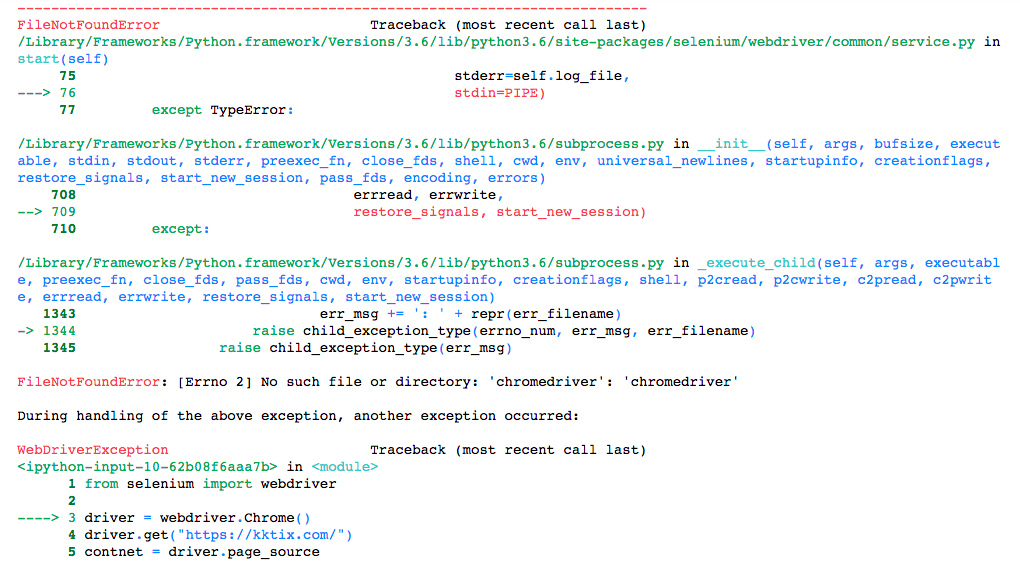 已經安裝selenium和chromedriver,也有使用“xattr -d com.apple.quarantine chromedriver” 取消程式的隔離註記