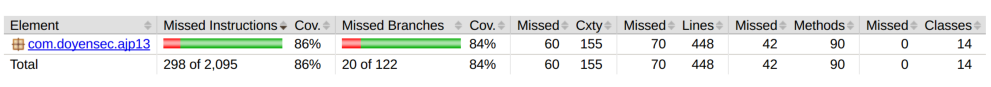 As of 02/27/2017, the JaCoCoverage analysis of project "libajp13" reports: