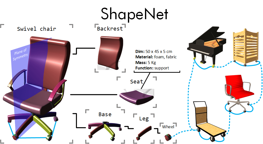 ShapeNetCore [Link]: 51300 models for 55 categories.