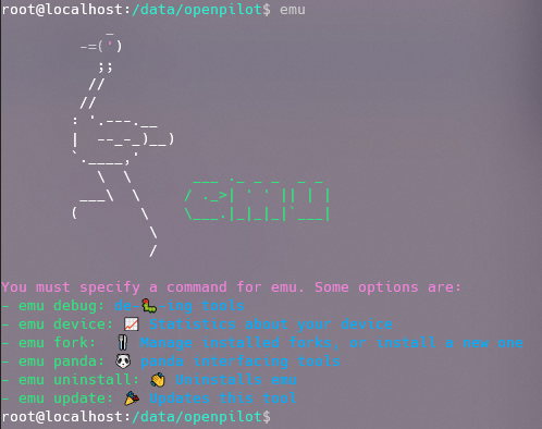 - `emu panda flash2`: 🎍 flashes panda using Panda module (usually works with the EON)