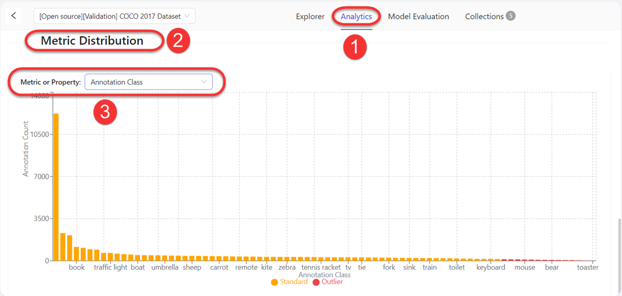 \n\n" +} +[/block] + +In this tutorial, we will dive into the quickstart dataset and show you some cool features of Encord Active. You will go through the following steps: + +1. [Opening the quickstart dataset](#1-opening-the-quickstart-dataset). +2. [Finding and tagging outliers](#2-finding-and-tagging-outliers). +3. [Figuring out what metrics influence model performance](#3-figuring-out-what-metrics-influence-model-performance). + + +> ℹ️ Note +> This tutorial assumes that you have [installed](https://docs.encord.com/docs/active-oss-install) `encord-active`. + + +## 1. Opening the quickstart dataset + +To open the quickstart dataset run: + +```shell +encord-active quickstart +``` + +Encord Active downloads the dataset and opens the UI in your browser. + +![Encord Active Landing page](https://storage.googleapis.com/docs-media.encord.com/static/img/tutorials/active_landing-page.png) + +> ℹ️ Note +> If the terminal just seems to get stuck and nothing happens, try visiting http://localhost:8000 in your browser. + + +### About the dataset + +The Quickstart dataset contains images and labels for 200 random samples from the [COCO 2017 validation set](https://cocodataset.org/#download) with a pre-trained [MASK R-CNN RESNET50 FPN V2](https://arxiv.org/abs/1703.06870) model. + +## 2. Finding and tagging outliers + +First, we will find and tag image outliers. + +### Identifying metrics with outliers + +When you open Encord Active, you will start on the landing page. + +Click the `quickstart` project. The "Summary" page for the project appears: + +![Data Quality Summary Page](https://storage.googleapis.com/docs-media.encord.com/static/img/tutorials/active-quickstart-data-quality-summary.png) + +On the Summary > Data page, you can see all the data outliers that Encord Active automatically found based on all the [Quality Metrics](https://docs.encord.com/docs/active-quality-metrics) that were computed for the images. + +> 👍 Tip +> You check the metric of distribution for outliers using the Metrics Distribution graph and selecting the outlier from the drop-down. Good places to start could be the "Brightness" and "Sharpness" entries. + +On the Summary > Annotations page, you can see annotation outliers that Encord Active automatically found. + +![Annotation Quality Summary Page](https://storage.googleapis.com/docs-media.encord.com/static/img/tutorials/active-quickstart-annotations-quality-summary.png) + +### Tagging outliers + +To tag an image identified as an outlier, go to the Explorer page and select one or more images. The *TAG* button is enabled. Click the *TAG* button and specify a new tag. + +Once the tag is created, you can add the tag to the images by selecting images and clicking the *TAG* button and selecting a tag from the list of tags. + +![Tag an image](https://storage.googleapis.com/docs-media.encord.com/static/img/tutorials/active-quickstart-data-quality-tagging.png) + +> 👍 Tip +> Use the Explorer scatter plot graph, the filter feature (click the *FILTERS* button repeatedly to add multiple filters including tags or labels) and queries (queries are only available from the web-app) to specify the images you want to tag. +> ![Filters](https://storage.googleapis.com/docs-media.encord.com/static/img/tutorials/active-quickstart-data-quality-tagging_02.png) + +Once you are satisfied with your tagged subset of images, you can move on to exporting. + +> ℹ️ Note +> Multiple subsets can be created in the web-app. + + + +## 3. Figuring out what metrics influence model performance + +Encord Active also allows you to figure out which metrics influence your model performance the most. +In this section, we'll go through a subset of those: + +- [The high level view of model performance](#the-high-level-view-of-model-performance). +- [Inspecting model performance for a specific metric](#inspecting-model-performance-for-a-specific-metric). + +### The high level view of model performance + +#### mAP and mAR scores + +First, navigate to the _Predictions_ > _Summary_ page where you find multiple insights into your model performance. + +The first section displays the _mean Average Precision (mAP)_, _mean Average Recall (mAR)_, _true positive (TP)_, _false positive (FP)_, and _false negative (FN)_ of your model based on the IOU threshold set in the top of the page. + +![mAP and mAR scored](https://storage.googleapis.com/docs-media.encord.com/static/img/tutorials/active-quickstart-metrics.png) + +Dragging the _IOU_ slider changes the scores. +You can also choose to see the aggregate score for certain classes by selecting them in the drop-down to the left. + +#### Metric importance and correlation + +Scrolling down the _Summary_ page, the importances and correlations of your model performance display as functions of metrics. + +![Metric Importances](https://storage.googleapis.com/docs-media.encord.com/static/img/tutorials/active-quickstart-metrics-importance.png) + +![Metric Correlation](https://storage.googleapis.com/docs-media.encord.com/static/img/tutorials/active-quickstart-metrics-importance.png) + +From this overview, you can see that, for example "Confidence" has a high importance for the model performance. + + + + +Next, we can jump to the _Metric Performance_ page and take a closer look at exactly how the model performance is affected by this metric. However, we want to show you the rest of this page prior to doing this. + +You can skip straight ahead to the [Inspecting Model Performance for a Specific Metric](#inspecting-model-performance-for-a-specific-metric) if you are too curious to wait. + +Before jumping into specific metrics, we want to show you the decomposition of the model performance based on individual classes. Scrolling down the _Summary_ page, the Per Class average precision, average recall, and precision recall curve scores for each individual class appears. + + + +### Inspecting model performance for a specific metric + +Using the _Metric Performance_ and _Explorer_ pa