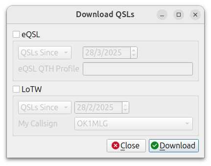 The Download QSLs function only retrieves the confirmation status of QSOs from particular services (i.e., whether a QSL card has been received or not).