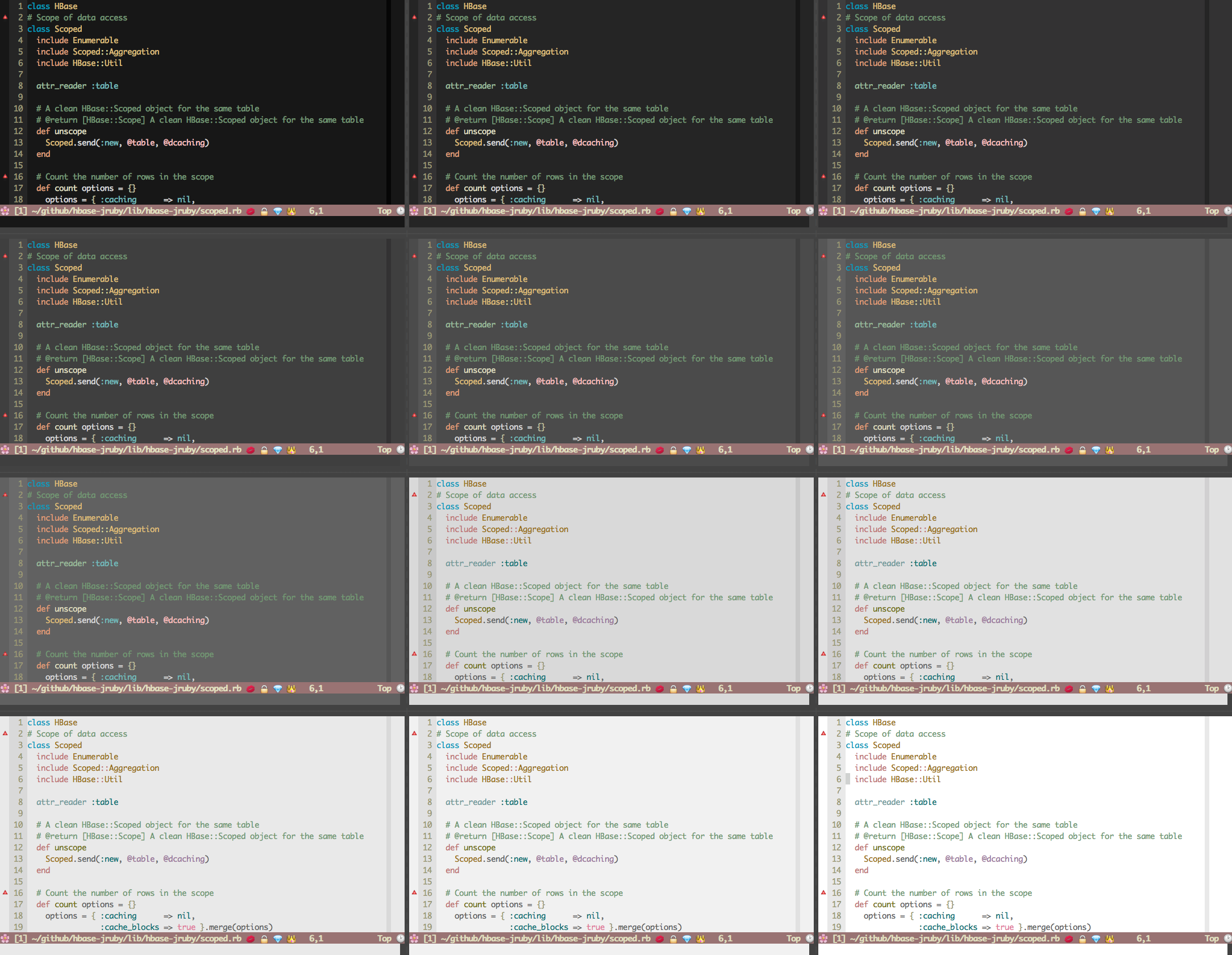 seoul256.vim is a low-contrast Vim color scheme based on Seoul Colors. Works on 256-color terminal or on GVim.