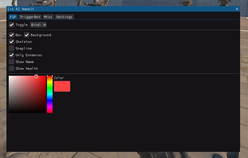 - ESP (Box/Skeleton/Snapline/Health...)