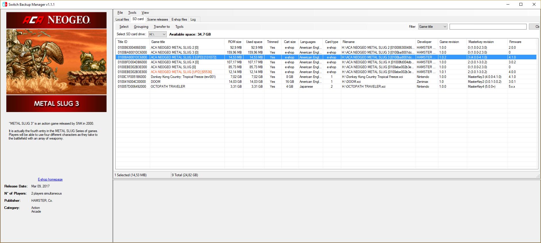 - Manage your local (XCI & NSP) and SD card Switch backups