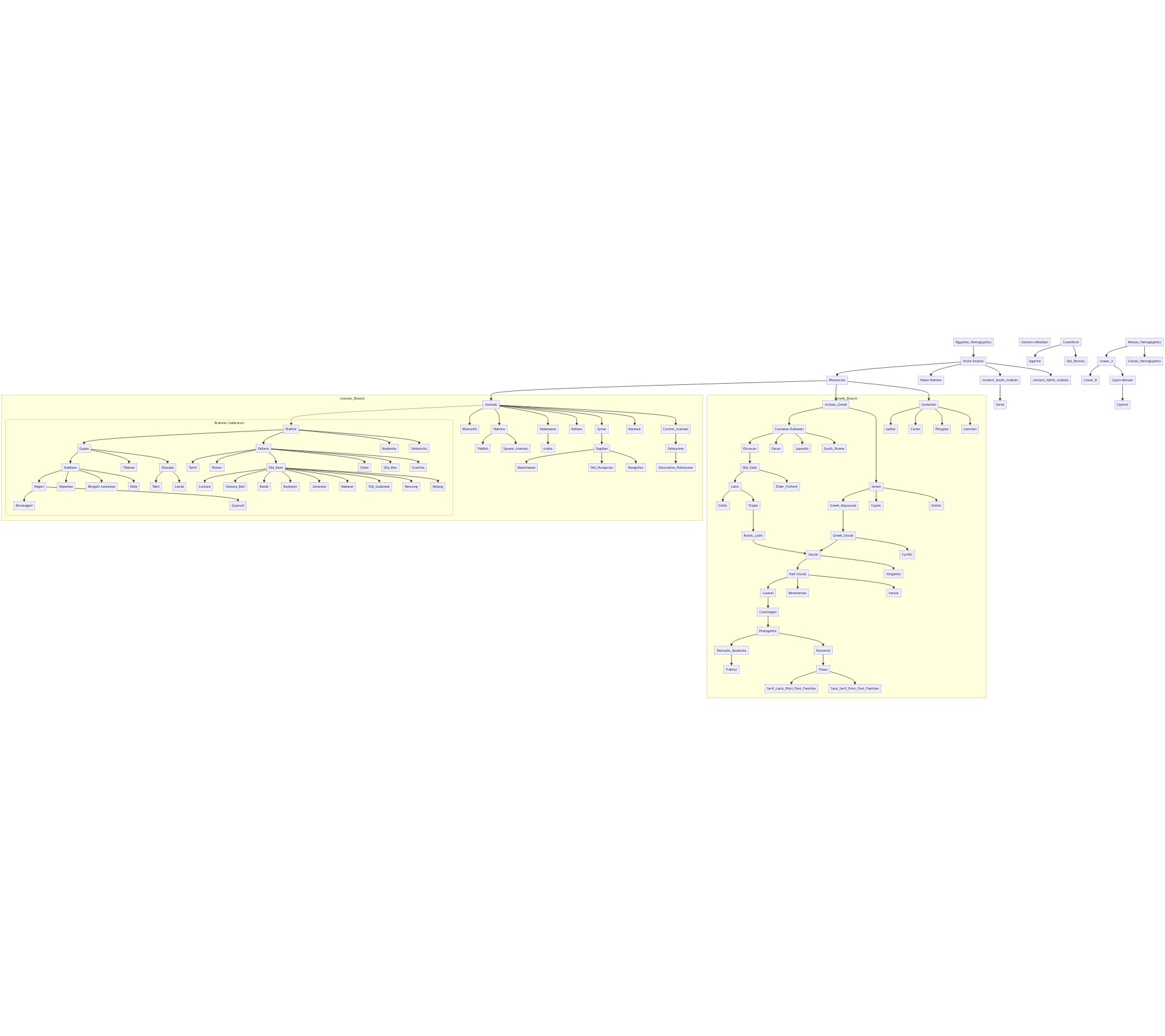 The whole thing is still in early development and structuring. Phonology transitions, timelines, and better formatting/layout are all things I'd like to add in addition to all encoded and historically relevant scripts.