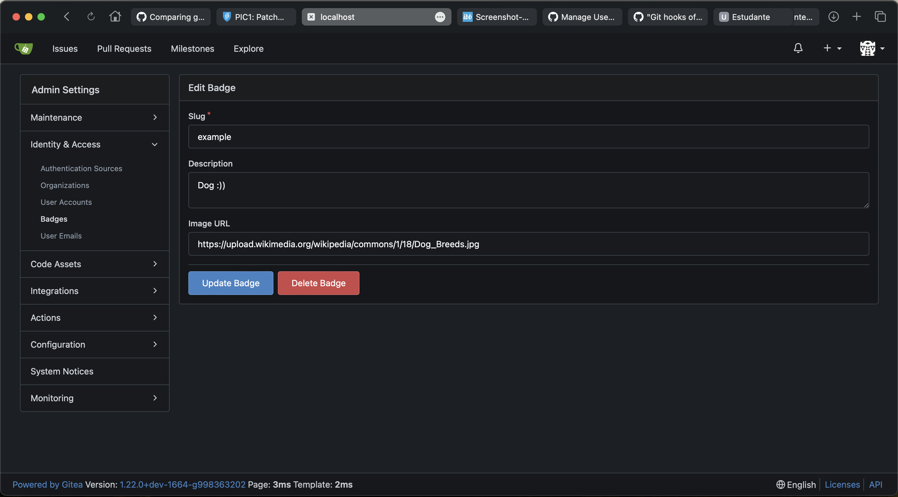 9 Added new translation phrases (en-US): search.badge_kind, form.ImageURL, form.invalid_image_url_error, form.slug_been_taken, admin.badges, admin.badges.badges_manage_panel, admin.badges.details, admin.badges.new_badge, admin.badges.slug, admin.badges.description, admin.badges.image_url, admin.badges.slug.must_fill, admin.badges.new_success, admin.badges.update_success, admin.badges.deletion_success, admin.badges.edit_badge, admin.badges.update_badge, admin.badges.delete_badge, admin.badges.delete_badge_desc