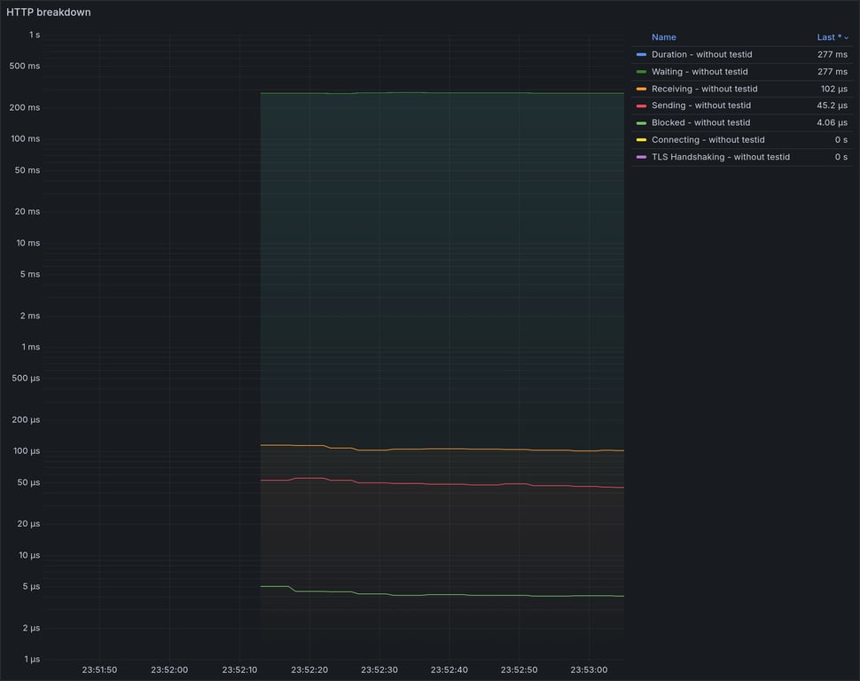 http_req_sending...............: avg=156.9µs min=5.34µs med=10.89µs max=285.78ms p(90)=35.67µs p(95)=153.76µs p(99.9)=11.04ms