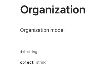 {model name} model. e.g.Organization model(https://bank.hackclub.com/docs/api/v3/schemas/Organization)I've been trying to figure out how to override that default description with no luck. I know it's possible, but it's not documented at all