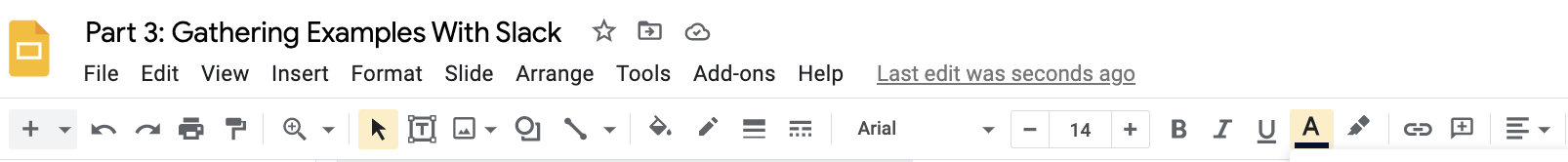 - If it isn't already, change the font to Arial and the size to 14. If the text will not fit on the slide at size 14, keep it at a smaller size and make a note with the slide number in the comments of this issue.