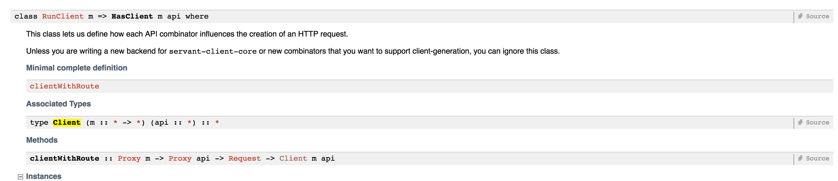 The above haddock says that the reader should ignore the RunClient typeclass, and the associated Client type (since it's undocumented).