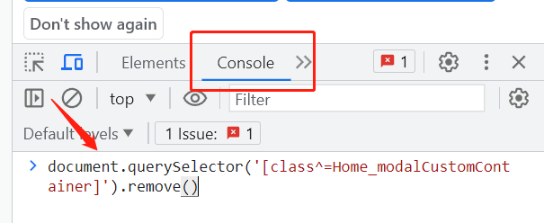 F5刷新网页,把 开发者工具切换到Console,输入代码document.querySelector('[class^=Home_modalCustomContainer]').remove()后回车 -