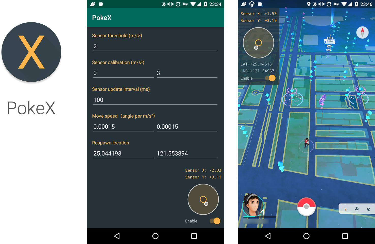 PokeX is an Xposed module to control Pokémon GO player location with accelerometer.