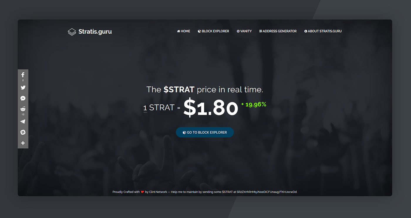 Stratis.Guru reborn from his Version 1 with some new features, completely rebuild in .Net Core, and supported by the Stratis community. You will find a $STRAT Price Ticker, an address generator, a block explorer, a community lottery and an API.