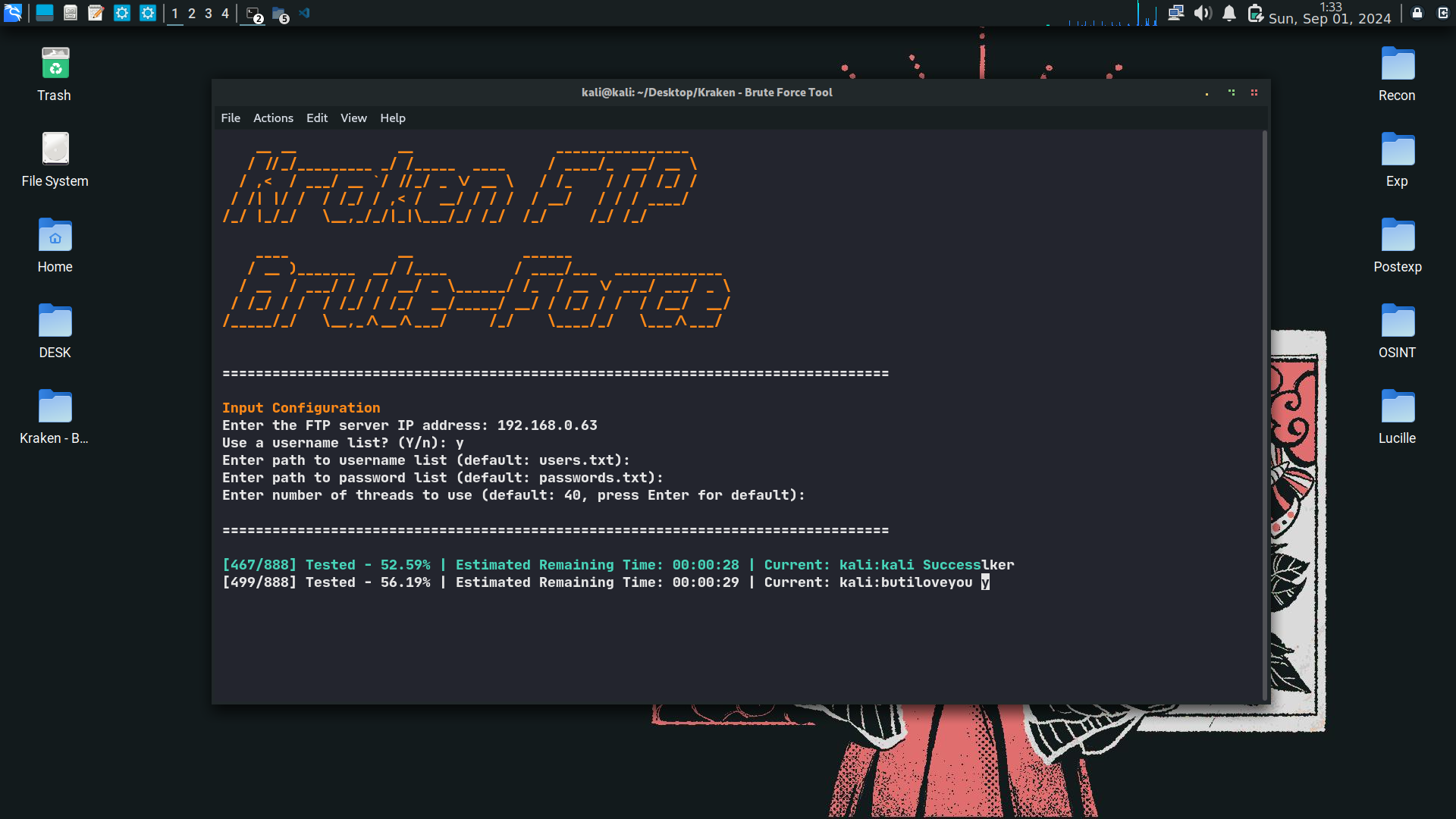 root@kraken:~# 1This command would start the FTP Brute Force tool.