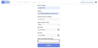 Universal Cashback Protocol was born as a decentralized solution for the cashback service using smart contracts, without intermediaries, using UCP (Universal Cashback Protocol) as token. The initial proposal developed works as follows: Affiliate companies can generate rewards with UCP tokens for the purchase of products, by accumulating UCP for purchases, it allows the user to exchange UCP tokens for USDT and buy more products.
