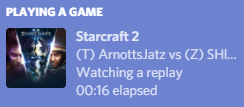 SCRichPresence Add rich presence to discord for SC2 Features Display the current game status in Discord Rich Presence. Usage Extract the zip somewhere Start SC2 Start SCRichPresence Dependencies: https://github.com/Microsoft/cpprestsdk https://github.com/discordapp/discord-rpc Support me